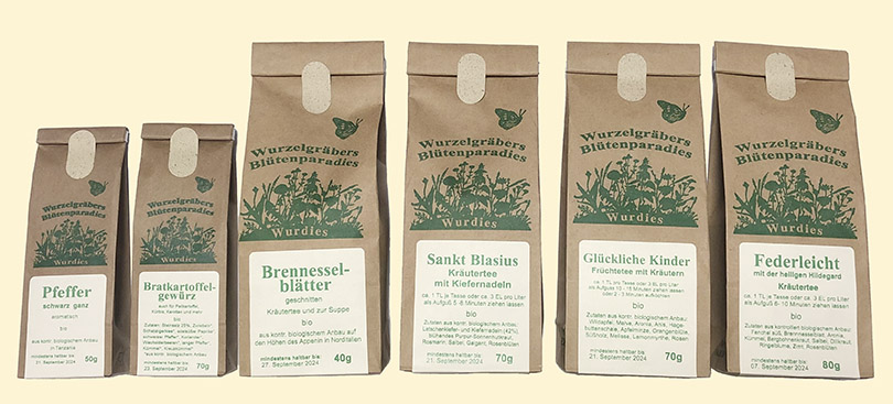Biologisch angebaute und wildwachsende Kräuter &Tee vom Wurzelgräber „Wurdies“